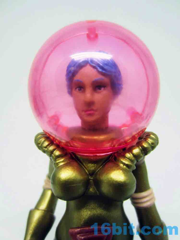 Debuting fully painted rather than a clear figure, the golden figure is much brighter than my archival Comet figure with similar, almost matching accessories. The colors are a smidgen off (expected, run six years later) but she's right at home on Venus.