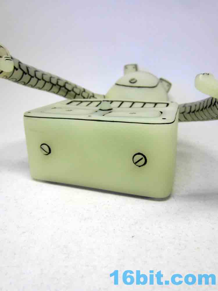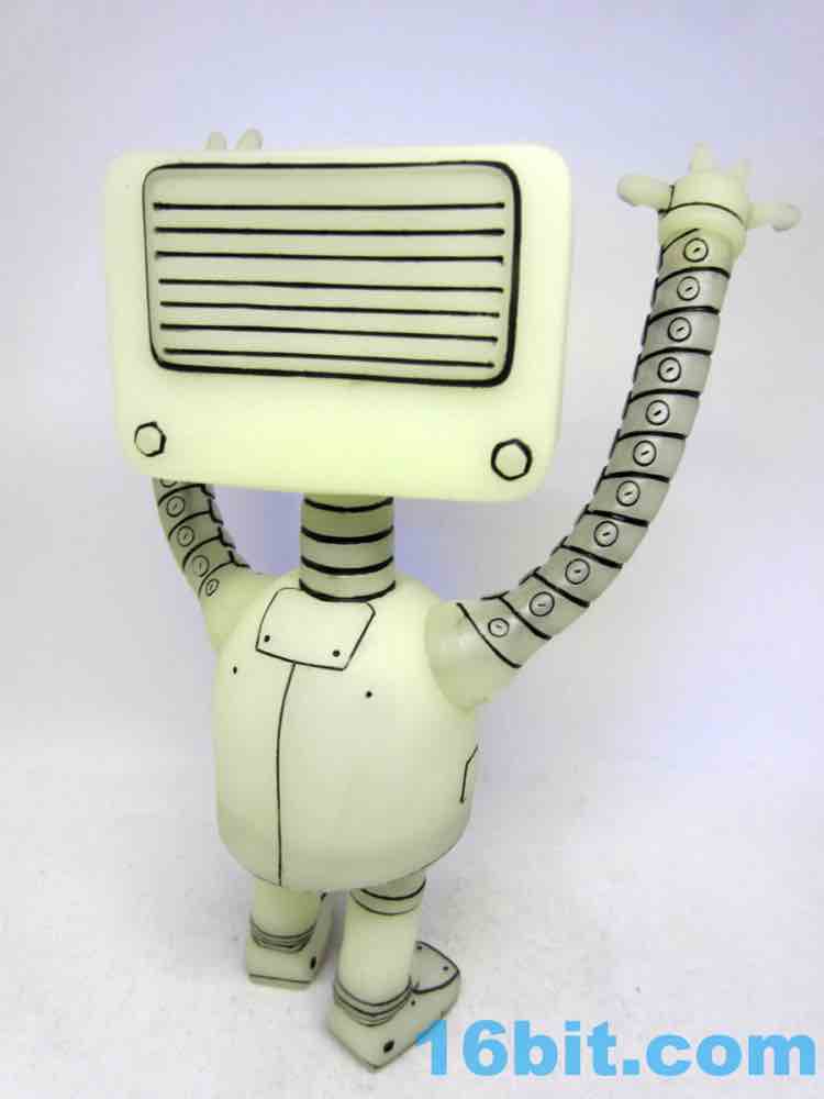 ThreeZero PopFuzz Glow in the Dark The Robot Vinyl FigureFor the last few years, I make a trip to Brooklyn during New York Toy Fair. It's weirdly quiet at night - the streets are usually pretty empty and it's cold. I hop in a number of record stores, including PopFuzz - a toy shop with video games, toys, DVDs, records, and things I wish to see. They worked with ThreeZero to make a mascot toy, and this year I bought their Glow in the Dark The Robot. I saw the silver one in previous years and thought it was pretty neat - but I'm trying to cut down on extraneous purchases. Because it glowed, the 8-inch vinyl toy seemed like a viable purchase.