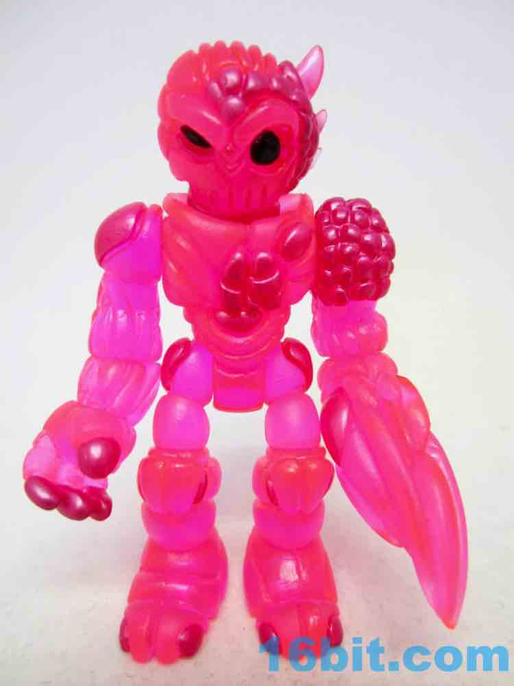 If the 2 3/4-inch Mutant Evolver Pheyaos Hyper Mordireus Fusion looks familiar, it should! Onell Design and RealxHead have been conspiring together on figures for years, most of which sell out in 30 seconds and I've never really had a shot at them. The default head matches Pheyaos Mini and Pheyaos Man, with an all-new Glyos-compatible body that really does match the style of the RealxHead soft vinyl figures you missed and can't afford. A bonus face on the back of the head looks a little bit like the Chaos Trooper, but what truly amazed me was the color match of the plastic. If memory serves the first Mordireus Pink figures were sold in the December 12, 2012 drop with the likes of Sarvos and Crayboth and again in September 2013 with