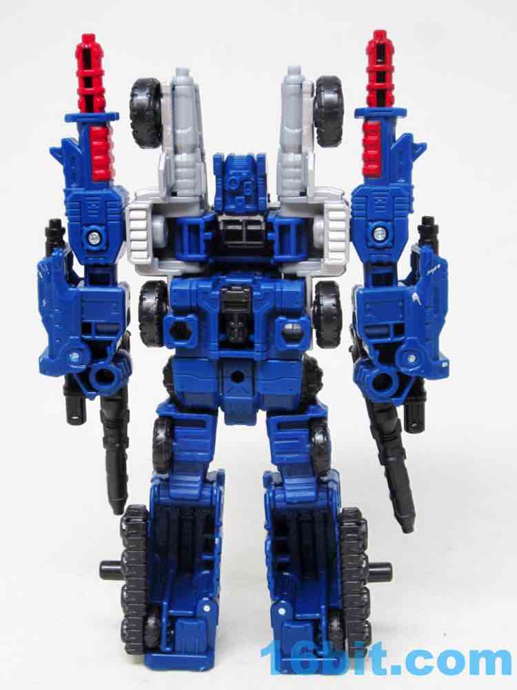 Transformation from robot to the combined vehicle mode is some of the least interesting we've ever seen at this scale or price point. Pop out the arms, plug them into the chest. Plug the guns into the shins. Rotate the robot head back. You're done. A few more twists and turns are needed to make the various armor configurations or the two mini-vehicles, but it's not exactly involved. In any sense, to get Hasbro's modes you would need to consult the instructions because it's kind of a "mode because I say it is" not unlike some of the more peculiar third modes of the late 1990s Beast era. It's not something your instincts would discover, necessarily.