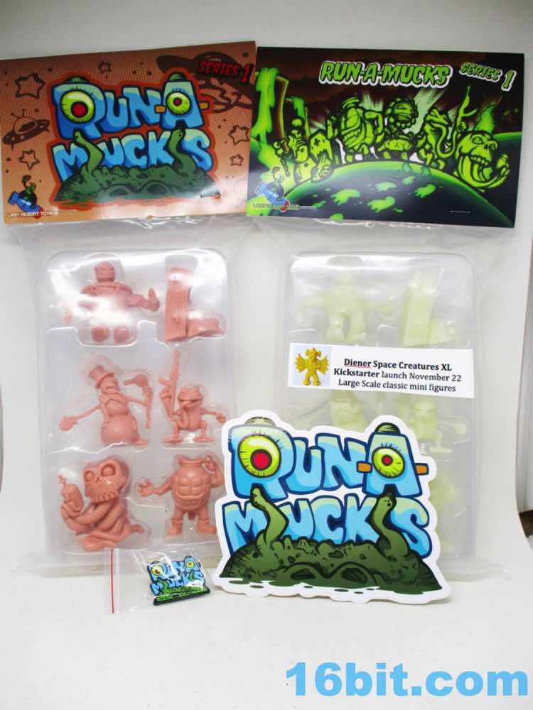 Since October Toys' O.M.F.G. line kicked open the door for crowdfunded designer figures bringing fancy designs at Keshi prices, we've seen a new batch of these guys from somebody every year or so. I was happy to see Last Resort Toys Run-A-Mucks Series 1 Flesh Mini Figure Set as well as its glow counterpart. There are more colors, but I stopped with these - they're bigger than other previous lines, with a few massive figures that barely fit in the golf ball display cabinets I've been using for mini-figures. The focus is a lot more "gross" or "violent," with 4 of the figures holding weapons, 3 of the figures having something coming in or out of their mouths, and two figures appearing to be self-destructing. These aren't cuddly - there's no snot or giant, weird eyeballs but these are some slightly more disturbing figures. Last Resort Toys has also been remaking classic monster mini-figure toys in giant sizes, so they're very familiar with the format and how to get the most out of it.