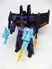 Unless you burned out on this mold already, Hotlink is a must-buy. He's like Skywarp, but different - and maybe better. The black toy has wonderful purple sprays, with gorgeous fades and highlights that make the figure pop nicely. The glossy grey scowl on his face is fine, the red light-up eyeport is also fine, and the bright orange under his wings really sings. Articulation is still exceptional, and the joints on my sample are all nice and tight. It's so good you'll be mad Hasbro hasn't already announced Bitstream and Sunstorm. The 2013 BotCon toy has more cartoon-accurate colors, but this one has a more cartoon-accurate alt mode and more articulation. Also, for the time being, it's likely to be cheaper and builds out a very nice growing collection.