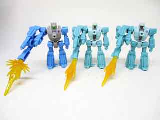 The two Battle Masters Heartburn and Heatstroke are both repaints of Blowpipe, but for some reason Hasbro left out the ring of fire part of the C.O.M.B.A.T. blast. Both are a pale blue meant to look like Heatstroke's flamethrowers on The Transformers cartoon series, and they're almost identical. Their visors are different - a detail you may have also missed. Heatstroke is red, Heartburn is yellow. How you'll remember this, I don't know. It's outright difficult to remember the names of sidekick characters with no cartoon or comic characterization.