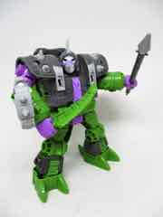 He's short - about 4 1/2-inches tall, not including the head fin. He's bulky and wide, plus he has good articulation - in and of himself, he's an acceptable figure with rotating wrists that can easily hold his spear in one or both hands. His big feet are super steady, and he's got rocker ankles too. There's a lot of articulation that isn't needed for the transformation, but given how simple and underpowered that transformation is we're lucky they're giving us a little something. 24 points of articulation, most of which are the arms and legs, give him a perfectly fine range of movement.