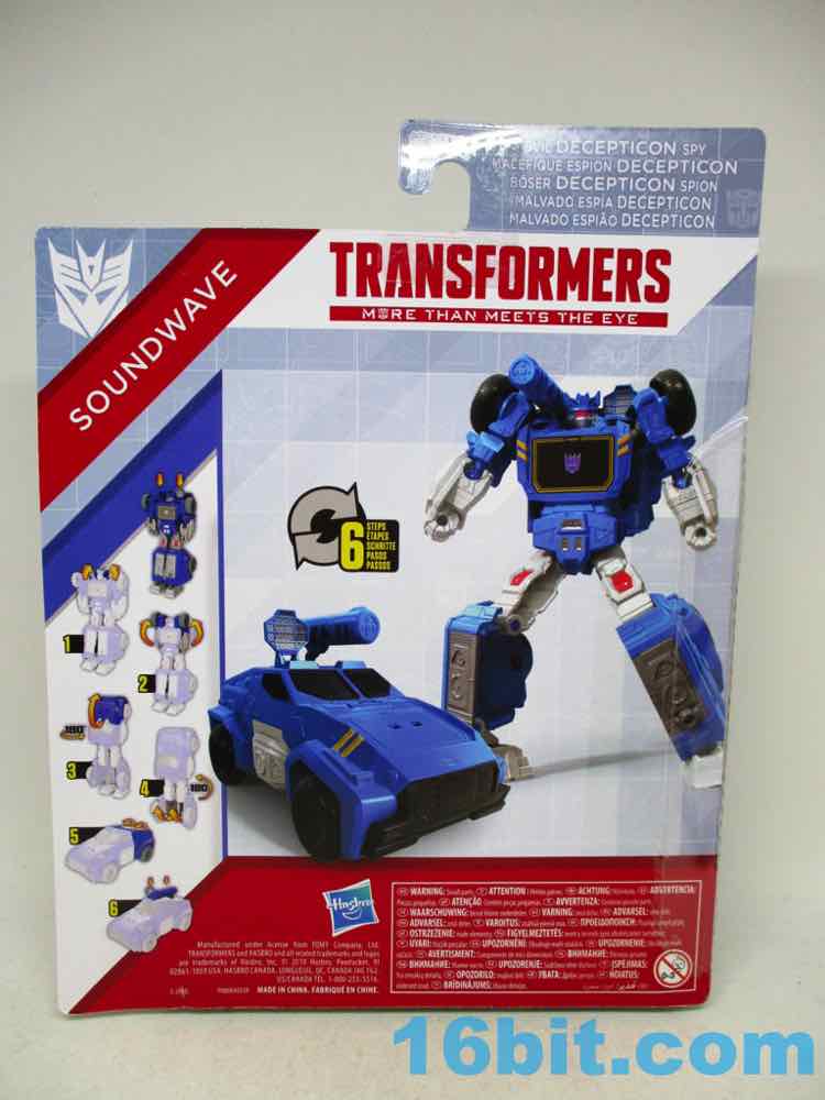 This Soundwave makes all 11 joints work nicely, with other moving parts thanks to his transformation. The ankles, shoulders, elbows, and hips are ball joints while the neck and knees swivel without a fight. It's not as amazing as a War for Cybertron toy, but it has a greater range of movement than the 1984 original at a fraction of the price. And no tapes. And no opening door. And no blaster. But it's still a pretty good Soundwave! He's taller than Megatron, standing a solid 7 1/2-inches tall. The lower legs really do seem unnecessarily long, but other than that the proportions are just fine. There are sculpted elements that should remind you of the original toys, but there are also a lot of speakers sculpted in the car and robot modes to drive home the point.