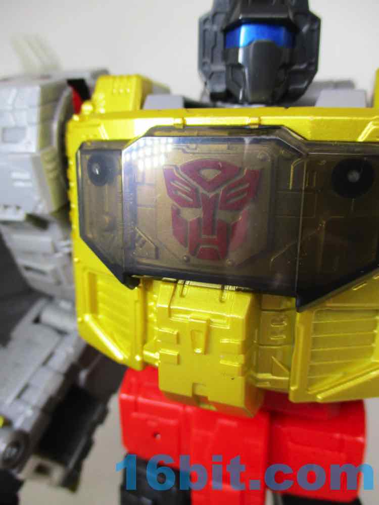 I cant say Grimlock is perfect or potentially the last one you'll ever buy - he's good, but just one look at his chest and you have a convincing argument for an upgrade pack. If Hasbro tossed in a few more of his toy's accessories, and/or included a non-nearly-opaque chest piece that hides the Autobot symbol, he might be the best Grimlock in the modern era of toys. He's big and chunky, with a sculpt that mostly hews to the cartoons - but you'll recall, he didn't do a lot of transforming in Transformers: The Movie so it's curious his robot mode was emphasized at the expense of the dinosaur mode.