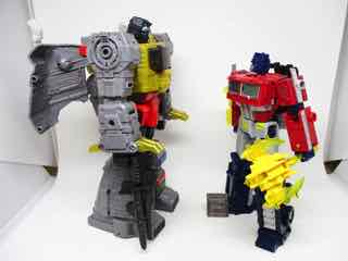 You get your money's worth with Grimlock & Autobot Wheelie. Grimlock is about as big as a Masterpiece, Wheelie is a 5-jointed non-transforming figure with a slingshot. For $50, the rather large Grimlock alone would be a good deal - although the jury may be out on of Wheelie is a more compelling accessory than a sword or some other element.