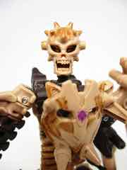 The Bernie Sanders in a chair meme of robot toys! Back in the days of the Beast Wars in the 1990s, Maximals were generally birds and mammals, while Predacons were generally bugs, dinosaurs, or reptiles. Bones in Kingdom are a new addition, with Paleotrex joining team Predacon with a fancy bone logo on the instructions. It's almost a wholly new thing, but it's a turducken of notable, and surely mostly intentional, references to older toys. It's probably a coincidence that the figure looks like the fossils Megatron scanned, but the robot mode head is a doule-reference. You can flip up a battle helmet like the old "mutant heads" in 1996, with the "masked" head appearing to be a clear nod to Optimus Primal's original skull-head mace. (You can even pop it out and use it as a weapon, while keeping the bones mode intact.) I also assume the entire Fossilizer premise owes a small debt to Kenner's classic (and obscure) Bone Age toy line in which action toys and construction toys met in a very 1980s-middle.