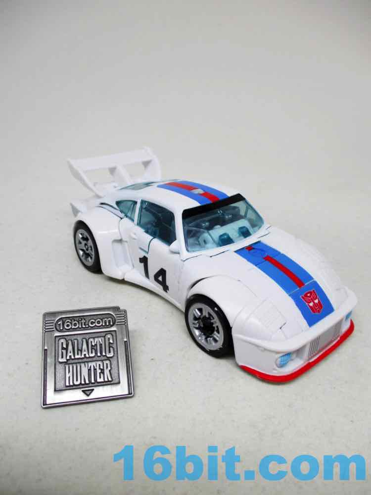I didn't have a Jazz as a kid, but if I had this 5 1/4-inch robot in 1984 it's entirely possible I would never have had a reason to come back to Transformers as an adult. This is the cartoon character as an action figure that just happens to be able to turn into a pretty good not-quite-Porsche 935 Turbo. I'm not a car guy so I can't look at it and tell you why it's different enough to not be a licensed vehicle, but I see nothing on the box so I assume it's not. The figure does a good job bringing many - but not all - cues from the toy since it's the cartoon model. The only place I felt came up short was in front of the neck, the hood's blue stripe doesn't go all the way up to his head. That's it. Otherwise it's probably as good as $19.99 could possibly get you until toy technology (or innovation) changes how this kind of thing is made.
