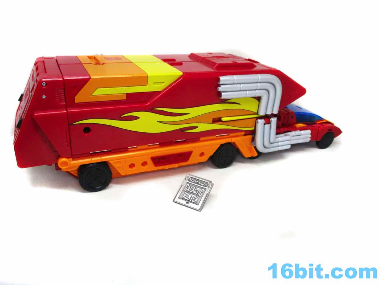 I don't like paying $80 for anything, so when I saw that Rodimus Prime would be a beefier toy than last year's Leader-Class Earthrise Optimus Prime [FOTD #2,10] - which itself an impressive figure but a stretch at $50 - I wasn't sure what to make of it. I wasn't happy that Rodimus' spoiler was painted yellow rather than molded in color (especially at the price!) but everything else is pretty good. My only other nitpick is it's tough to close the trailer in vehicle mode with everything crammed inside. Everything else about it is impressive. You get pretty much all the same gear as the G1 toy, but it's a lot bigger and has more bells and whistles. The transformation is mostly intuitive, the sculpting is excellent, and there are probably too many things to list in a review with my current attention span.