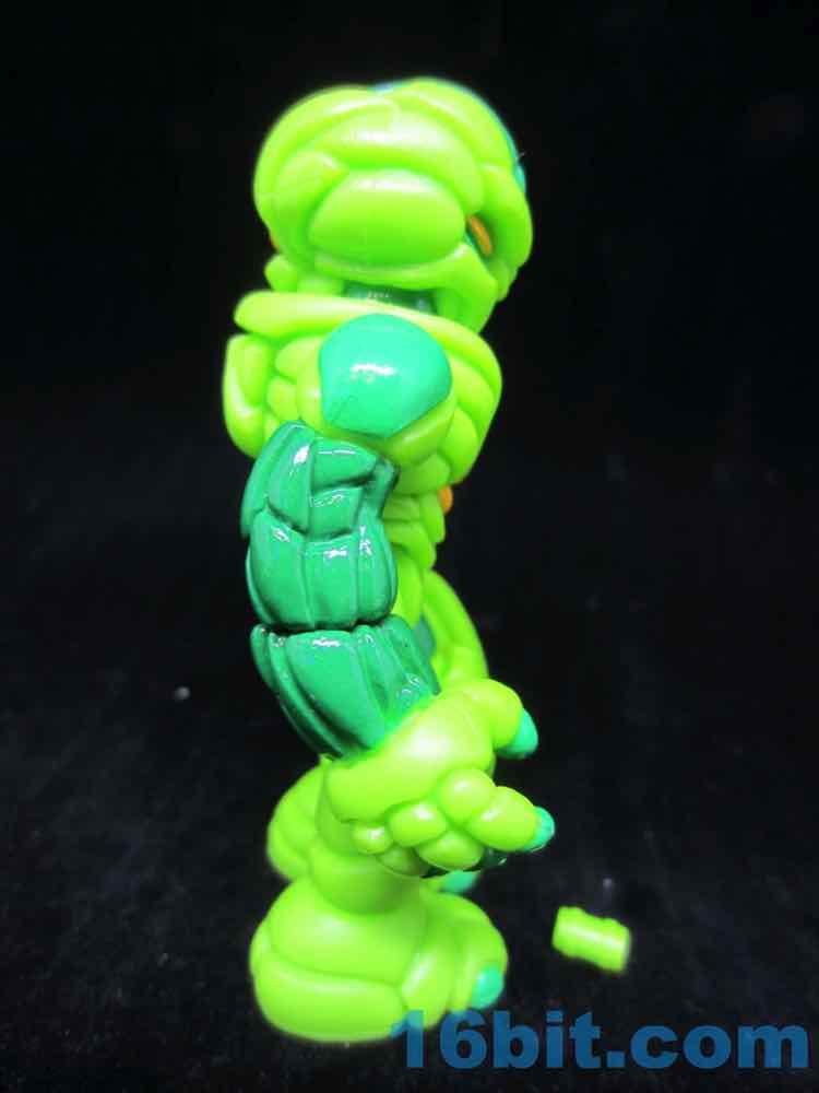 Cast in green, this lumpy little looker was given two shades of green paint as well as some yellow and black highlights. With 12 points of articulation, his build is pretty similar to Pheyden - swivel wrists, swivel ankles and knees, rotating shoulders and hips, and so on. The head and waist turn nicely, too. The figure is sized to fit with your other Onell Design things, but also Playmobil and Imaginext figures.