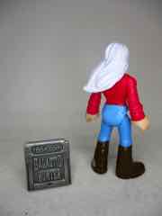 The 3-inch figure has no new parts - this series prided itself on using existing elements, which I assume was required to keep costs down. Back in 2019, a $3 action figure was effectively an impossibility. This one is pretty good for the money - she's got light gray or dark white hair, brown boots, a red shirt, and blue pants. The soles of her feet say "AMBLIN" on them, which is the giveaway that she has Speilbergian roots. My sample is a little back-heavy, with hair that doesn't seem like it was set exactly right - but for the price, she's still pretty neat. The limbs all swivel just fine, and she's something this line lacks. There are very few women, certainly few figures that read as middle-aged, and even fewer that aren't licensed or from extreme sports. It's just some lady. Maybe it's a mom figure? I can't say - but the solid colors look great and she seems like a retro figure if ever we got one. Unfortunately, there aren't a lot of places to put a modern, typical human person in this line - it's populated mostly by superheroes, monsters, and sports people. She's still cool, but she has no obvious home in a playset or vehicle.