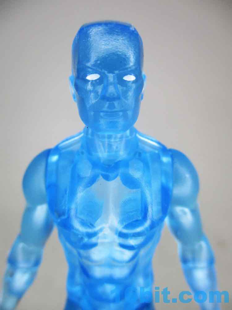 The 3 3/4-inch figure looks better than what was made in the days of Kenner as those tended to be a little flatter, but Bobby Drake is still pretty flat. Iceman's legs have an illusion of boots thanks to the calf pegs, which is a nice feature, and the musculature of the torso tends to be drowned out by the clear plastic and visible pegs. His hands have somewhat realistic figures compared to the sometimes oven mitt-esque digits of old, but he has no accessories. If he did, he could hold them pretty well - the hands have enough flexibility to fit in a lightsaber or blaster from your other toys. His head is bald and somewhat blocky, just like in the comics, and his white eyes pop pretty nicely.