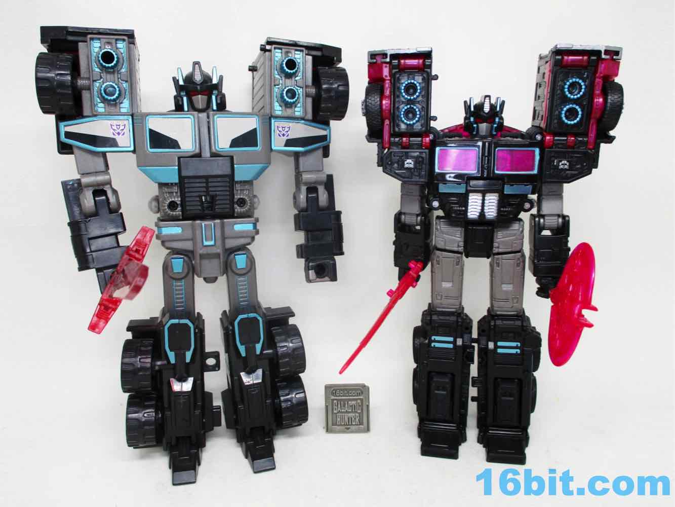 There was a time when a black repaint of Optimus Prime was novel - and that time was about 21 years ago. This Robots in Disguise 2000 Universe Scourge takes its design cues from the Japanese and Korean release of Black Convoy, rather than the 2022 US release of Scourge. The former had upside-down Autobot logos on it (so it could make use of existing discs for a disc launcher) and some very pink weapons. The US release was redder and swapped out "Commando" symbols for Decepticons, and that's what I bought - because at the time, Decepticon symbols were something that hadn't been sold in the US market on toys in quite some time. Now? I think we'd all prefer the upside-down G2 Autobot faces, and mercifully, that's what we got.