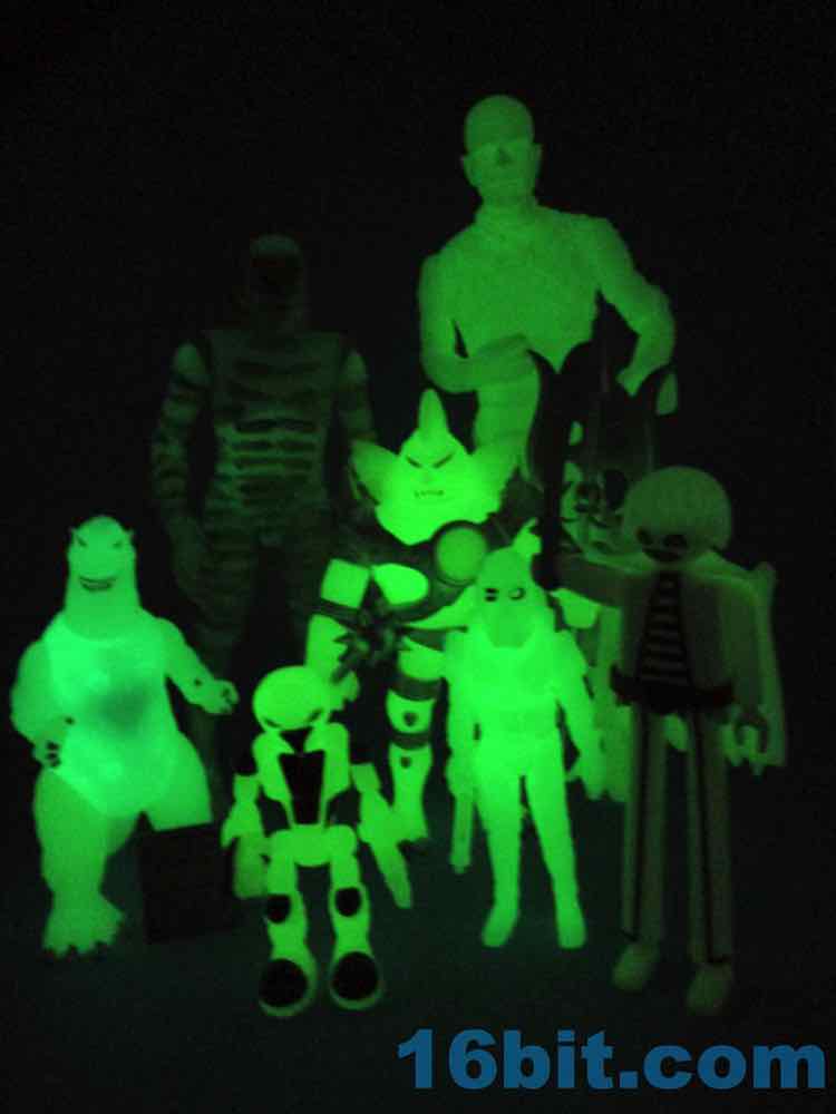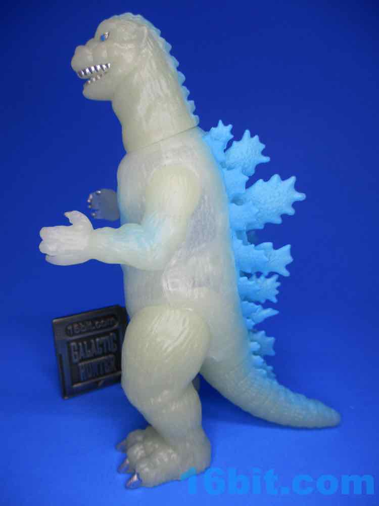 Super7's Godzilla '54 (Glow-in-the-Dark) reminds me a lot of an old glowing Dimetrodon toy [FOTD #2,394] that I've had for years - they're both glow plastic with blue spray highlights, which I assume is on a number of toys. For Comic-Con, Super7 took their base Godzilla '54 figure and cast it in glow with blue and silver highlights.