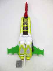 The comic jet was basically a torso with wings, and unsurprisingly this toy looks more or less exactly the same. It's bright and colorful, with a sillier, more fantastical design that fits in more with some of my other favorite toys. Earth-mode cars didn't appeal to me as a child, but I absolutely loved Hot Rod, Kup, Blurr, and other new made-up "future" designs. Retro-futurism like this is exactly the kind of thing that makes me happy.