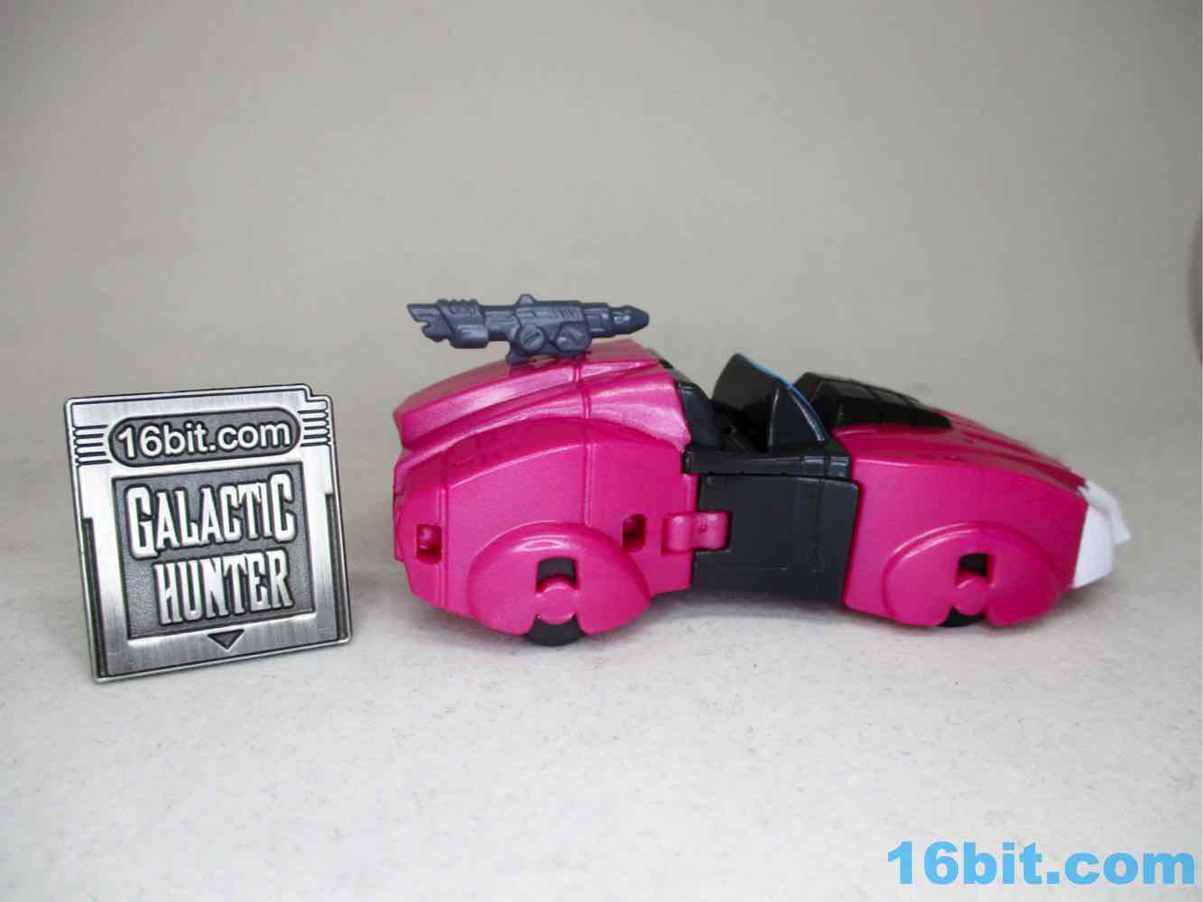 You will not be impressed by the figure, but it's not bad in that it actually transforms. Most recent Arcee toys are a lady robot figure crammed into a car kibble shell. This Arcee's shoulders and lower legs are the actual car, and the cartoony head, chest, tiny forearms, and thighs all fit inside the car bits. The articulation is pretty good for the money, but you're getting some puny arms and fake feet. But you're also getting a blaster that fits in that small fist, and if you're the kind of person that needs a cheap toy for your office, this is perfect. This is nicer than a Happy Meal toy, bigger than a Core Class toy, and better made than a comparably priced knockoff in a "dollar" store. But only by a little bit.