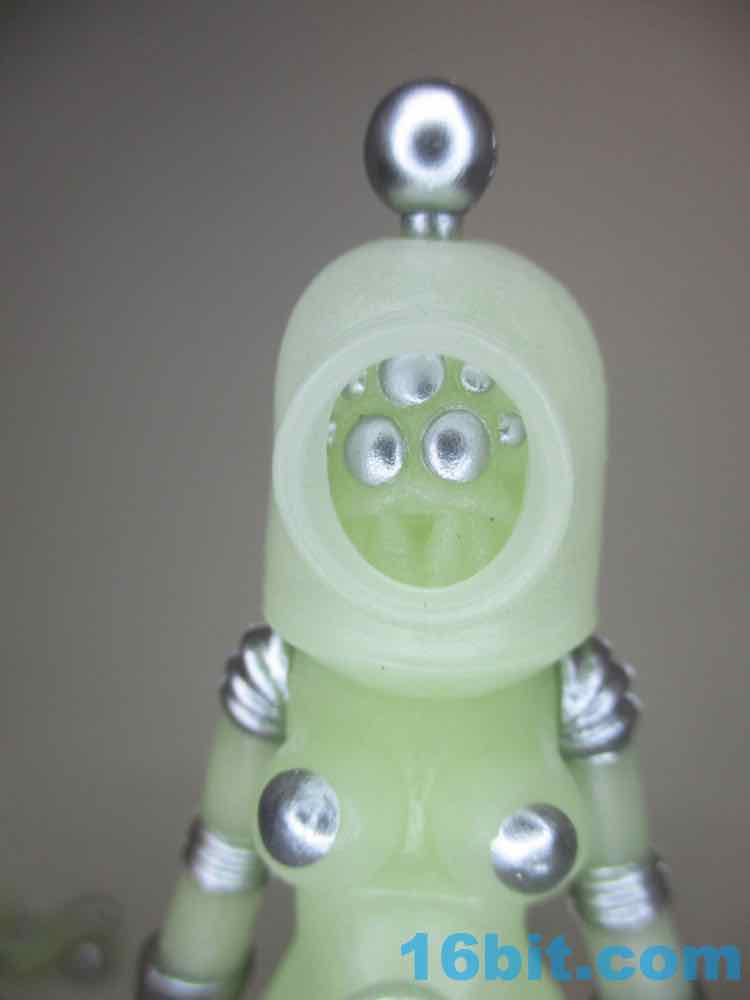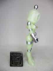 Given the Glyos-style The Outer Space Men had their time in the sun from 2010-2014, new figures like this would keep interest alive by trickling out slowly after the license reverted back to the owners of the brand. The silver-capped suit is great, but the glow-in-the-dark plastic really shines. This mix was particularly bright, and is another fine example of what the Glyos factory can do with glow toys. They're some of the very best - and with three faces (an alien, a spider, and a skull) the shine helps make out some of the details in the dark. The off-white glow plastic isn't the best for showing off sculpted detailing, but that's what the painted and White Star versions are there for.