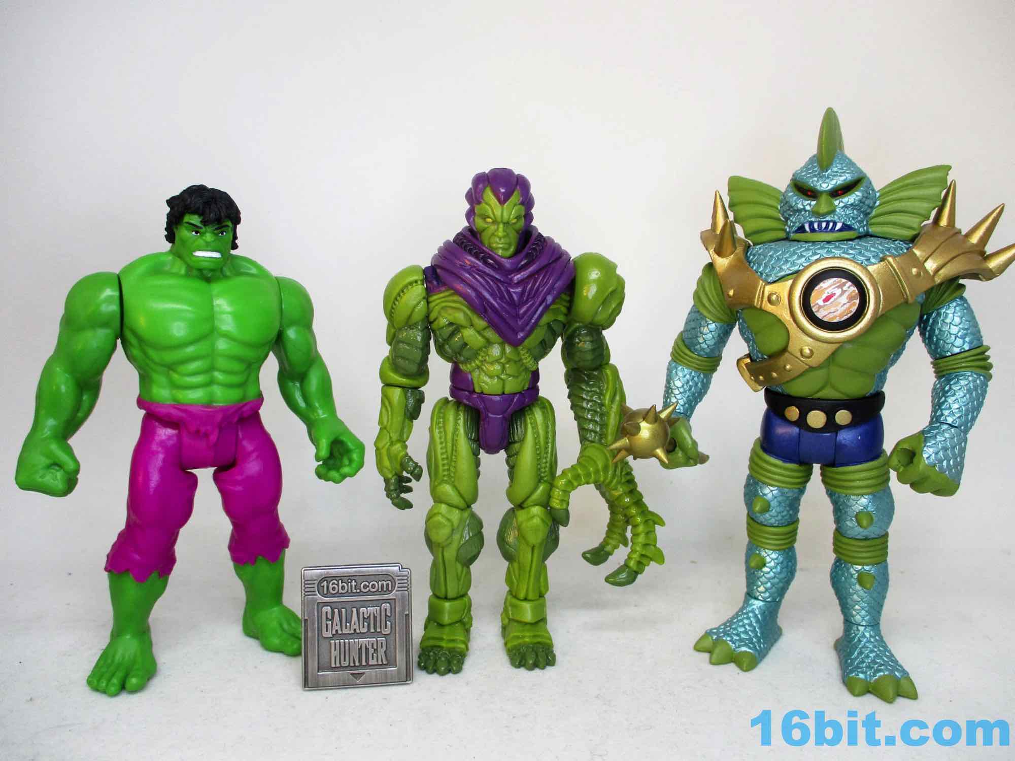 The original promise of Manglors 40 years ago was that you can tear apart and re-assemble various monster figures, including one that looks like The Hulk and Swamp Thing had a baby. It looked sort of like a Play-Doh Stretch Armstrong and the promise of mixing and matching parts resulted in something of an awful mess - but Onell Design went on to invent Glyos in the '00s and pulled off the gimmick well. After 10 years in development, ToyFinity's John Kent, along with Onell Design's Matt Doughty and sculptor Erwin Papa conspired to make a 3 3/4-inch scale (actually 4 1/4-inch) giant that can terrorize your other figures. He's about the same size as the "Kenner" Hulk or Venom, and comparable to the likes of The Outer Space Men Colossus Rex or Cyclops in many respects. If you collect Star Wars, he's on the bigger side of most humanoid figures - tall enough to stand around in the Sail Barge, but too big to fit in a lot of ships.