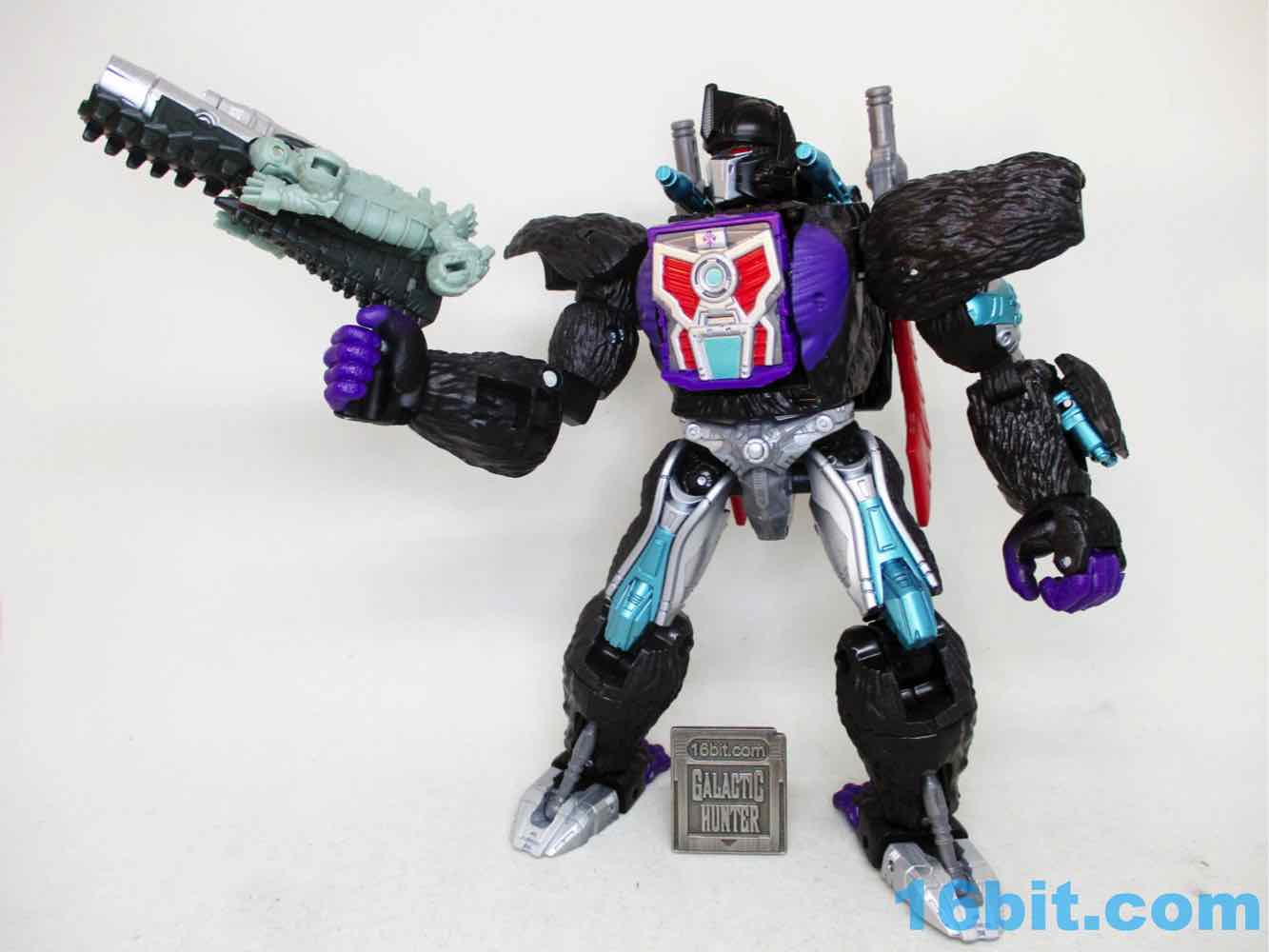 If it weren't for the thick, clean silver paint on the barrel I'd say this figure was a tremendous waste of resources. As it is, it's pretty good - it looked OK with a variety of figures, but it really sings with Nemesis Primal. The silver pops, the light green looks good, and there's enough blaster detail here that it looks like more than a gator with a grip on him. You can even plug in your War for Cybertron blast effects in there, but be careful to not store them in there. The gummy clear plastic has reacted poorly with other painted accessories and molted off.