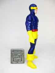 Scott uses the "wide body" which was used for Captain America, Loki, Falcon, Black Panther, and others. That means he has a peg hole in his back. The figure has the red belt, the yellow "X" buckle, the yellow boots with a little more meat on the top, and the yellow gloves. The colors match up nicely, and he has his trademark visor. Aside from the swivel wrists and separately-molded shoes, I'd say this is extremely convincing as a retro-style action figure.