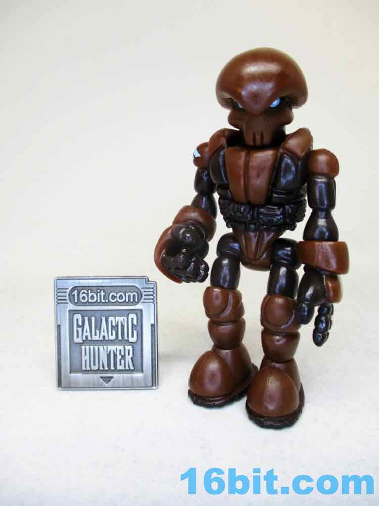 The same basic 2 3/4-inch figure is here, made from a nice plastic that has the same swiveling joints you love and the pop-apart-and-swap limbs functionality that is the line's hallmark. I assume if you're reading this you have at least a Pheyden or two, so you know what to expect. The cloth poncho/cape does nothing to hinder the movement, but what really surprised me is that the plastic poncho armor piece barely hindered the shoulder movement. He can still swing his arms forward a bit, and he has no problems sitting.