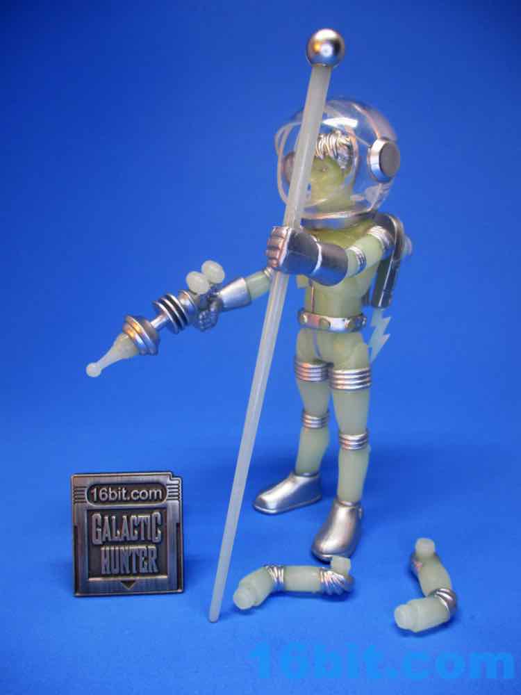 Item No.: n/a Manufacturer:The Outer Space Men Includes:Removable 3-piece helmet, magnet jetpack/Anti-Gravity Generator, Atomic Disintegrator, alternate arms Action Feature:Helmet has articulated visor, Glows in the Dark Retail:$25.00 Availability: July 13, 2018 Other: Still Available