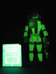If you've been reading this site, you know the score. He matches Cosmic Radiation Terra Firma [FOTD #2,599] and the rest of their glowing cohorts, although his layouts matches hers particularly well. He's also nearly identical to Cosmic Radiation Zero Gravity [FOTD $2,130] except for the head, the helmet, and the paint layout on the blaster. There's a silver stripe down the suit, silver gloves, silver boots, silver "accordion joints," and the like. He's a roughly 3 3/4-inch scale figure that pops apart at each joint, allowing you to swap in "straight arms" or "bent arms," or other Glyos-compatible parts and limbs.