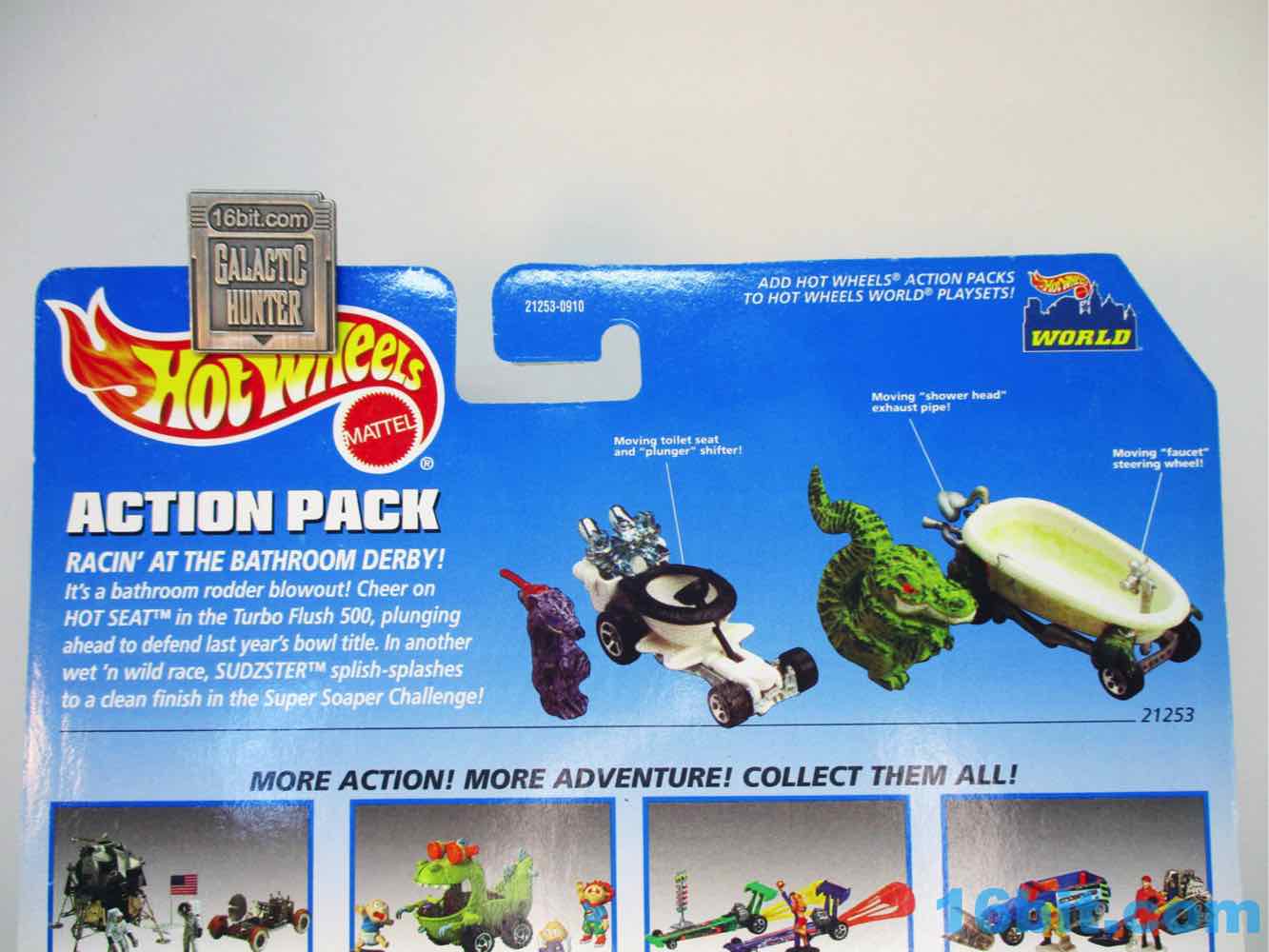 Item No.: Asst. ??? No. 21253 Manufacturer:Mattel Includes:2 cars with removable rat and alligator figures Action Feature:Opening toilet seat, articulated plunger shifter, articulated spigot and fixture Retail:$4.79 Availability: ca. 1999 Other: One of the most expensive Action Packs at present