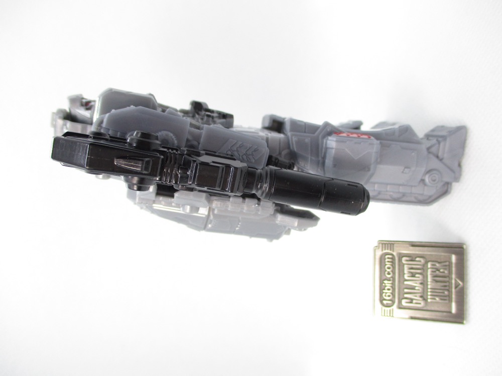 He stands a hair over 4-inches tall, with a silver painted face with red eyes. Most elements of the toy are molded in color, but his crotch, chest, and the red launchers on his shins are highlighted in red. The varying black and gray plastic colors look good - it makes the previous Megatron look pale by comparison.