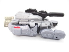 The tank has no wheels, but sports some unpainted sculpted treads and generally looks like the sort of thing that you might see on Cybertron. There amount of deco is minimal - a Decepticon logo and a couple of red splotches - so you'll be happy the fusion cannon is black just because it adds some visual flair to an otherwise vary gray toy. It doesn't do much, but it looks neat. Most vehicles aren't exactly packed with action, so it's arguably no better or no worse than similar items at other price points.