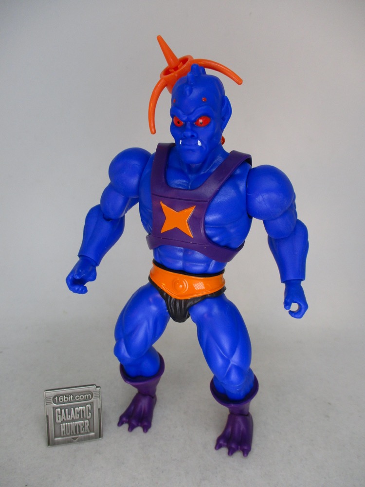 He looks a lot like the cartoon, with a less freakish face and a more subdued mouth with a couple of big fangs and two big bright red eyes. The bald head, pointy ears, and ridged forehead look like any of a number of humanoid creatures or aliens from the 1960s-1980s, making this fellow and the whole line look a little old-hat to their contemporary creatures. He doesn't look too far off from various Bronze Age comic aliens or villains, whereas a few pegs over might have had clearance Alien toys, Admiral Ackbar, or other then-modern designs. It's old hat today and it was almost a throwback when he was new, but that's OK - as kids, everything was new to us.