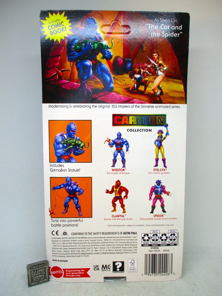 The great thing about the He-Man and the Masters of the Universe Cartoon Collection is how it can reconcile the cartoon redesigns from the action figures. So many figures looked significantly different in color or costume, that it makes sense Mattel would want to sell you two flavors of them. But Webstor looks very much the same - the Origins toy figure is pretty much the same colors, with slightly different armor and more eyes. Toy Webstor has a nice orange blaster and a blue grappling hook, while Cartoon Webstor has a statue of the cat-like Grimalkin and an orange hook. Do you need both? Probably not.