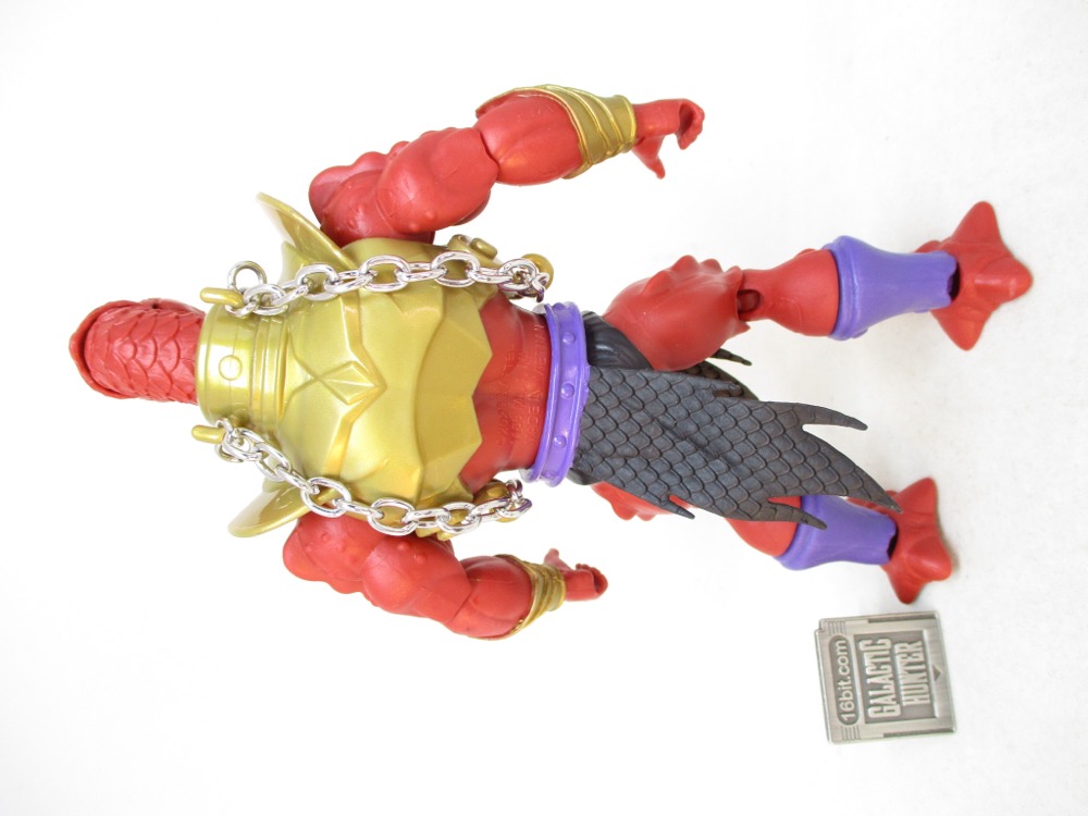 As always, a lot of this figure has recycled elements to help keep costs down (and figures consistent.) But the important thing is you get a new multi-part head and new armor! The neck is one piece, and a head is on top of that with a moving jaw. These parts have scaly skin, and since the body is separated by the armor, the sculpting difference between it and the typical smooth (or lumpy) skin isn't as obvious. The colors match, and it looks like it belongs. The opening jaw works well, the mouth interior is painted nicely, and I love the snaky expression on his face. It feels like an actual old toy, as if a lost 1988 toy existed where you push a button on his back and the head lunges forward while the jaw snaps. It should be noted the toy cannot actually do this, because someone decided collectors don't like fun play features. These people are wrong - I would love if it did more than just be posed and look cool. But it does look cool.