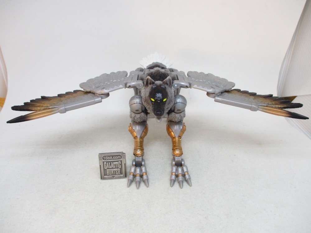 Transformation is pretty simple, similar to the original toy with a lot of folding backpack wing bits and more tabs to put together. It's not terribly complicated, and the resulting creature looks like something out of an elementary school kid's spiral notebook margin sketches. I find this one odd, but kids do love wolves and flying things. The design makes a lot of sense in that sense, as it's easy to forget the true reason behind nearly everything adult toy collectors covet stems from the fact that they wanted (or had) these as kids or adolescents. Anyone who wasn't part of the Beast Wars cartoon audience may dismiss unfolding wings and wadding up arms to result in some sort of bizarre sphinx creation as a massive waste of dollars, but he's a big part of the show and later G1 continuity. Also, not a pain in the neck to transform.