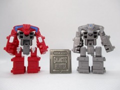 I'm surprised they made Wrecker Malleus Minotaurus interesting. This one takes the previously released red toy, and makes it all silver - but adds the insignia of Solus Prime, last seen in Power of the Primes, with a teeny-tiny faction symbol on his bull head. It's a fun toy in and of itself, but to color it to match what I assume will be her colors going forward - it matches her second Prime Master toy - seems a good choice.