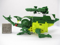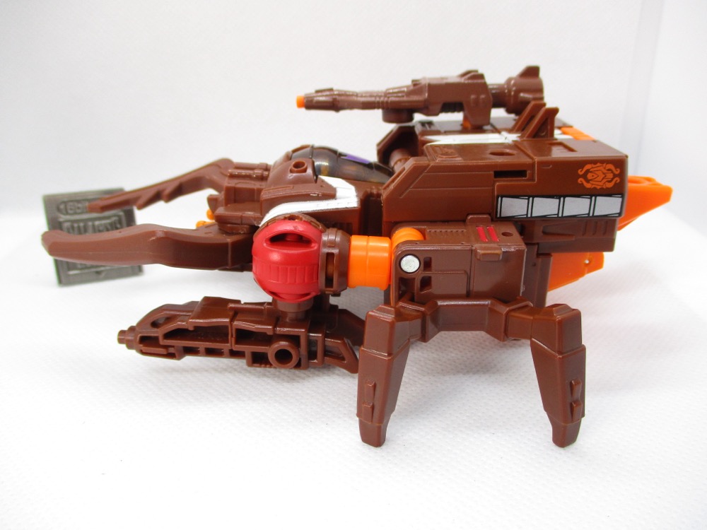Transformation is pretty simple, and the bug mode looks a good bit like the original toy. It's not identical, but Hasbro did a nice job with those add-on leg parts and making the shoulders into his eyes. The articulated mandibles are excellent, and I love a good mechanized animal toy. It's great to pick up something and have my reaction to it be something like "hey, this isn't frustrating at all!"