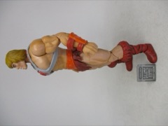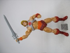 The older figures tended to have exaggerated heads and hands, plus a giant chest and a small waist. This one has slightly better human proportions with rock-hard abs, we;;-defined muscles, and a skin texture I could only describe as "plastic." It's like a toy - you've no doubt had any number of hard plastic toys with a similar pattern, so it's not smooth like most of Mattel's other lines. The boots and loincloth are a reddish brown, with a black wash over them that I don't particularly like. He has armor on his wrists, and of course the harness over his chest, all colored to recall the original 1982 action figure.