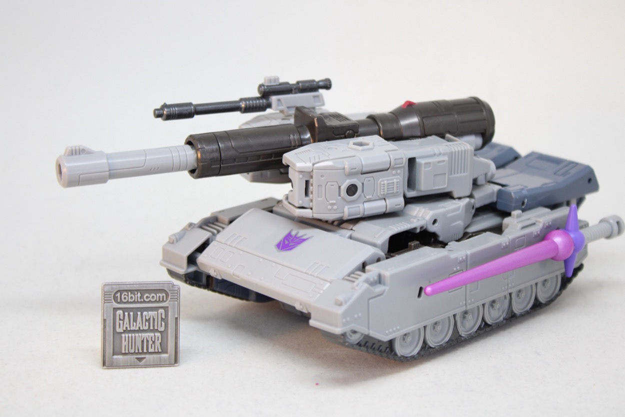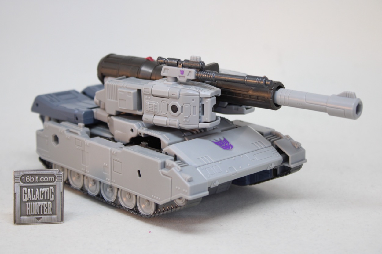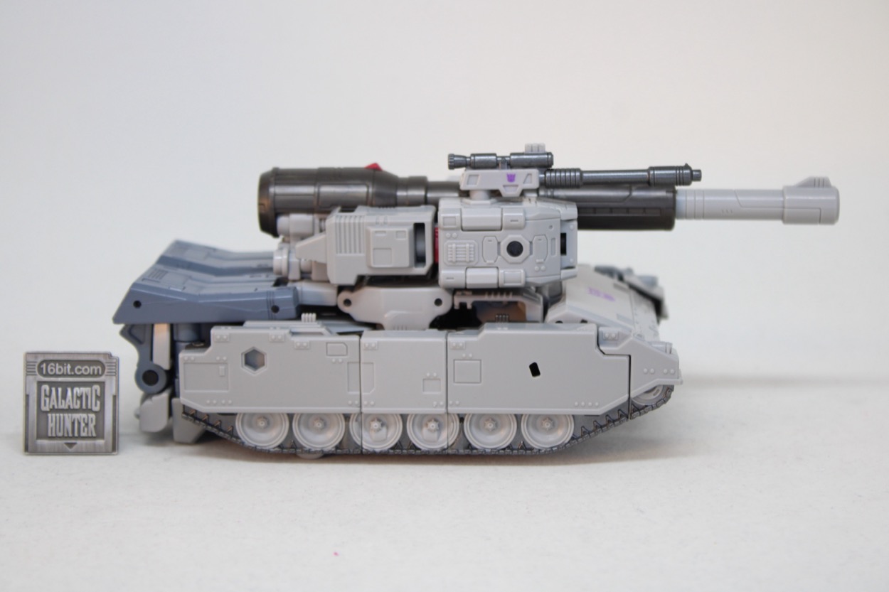 It doesn't have any real gimmicks, but the rolling wheels do a nicer job than most tanks. The turret rotates, but not amazingly well. I don't love where it connects, as it doesn't feel like it rotates in a tank-like way. But it's also a toy that was never meant to be a tank, so it's pretty impressive that it does what it does. There are some points to mount his weaponry, and of course some light sculpted detail that recalls the original toy with generally flat colors that mimic the cartoon. The engineers rose to the challenge, and I think they know - as you know - this is a toy you'll be leaving in robot mode. It's great that it can turn into a tank, but what you're buying is a very good action figure.