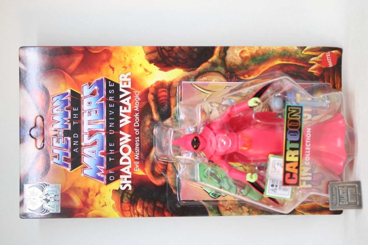 Mattel doesn't mention She-Ra or any Princess of Power on the packaging for He-Man and the Masters of the Universe Cartoon Collection, probably to make sure Shadow Weaver sells to He-Man fans who would be embarrassed about buying "girl toys." It's a weird thing to have shame about buying toys but it comes up a bit in collector spaces, as some people see their plastic people as collectibles or whatever and can't just have a good time. It's a shame, their life could be better.