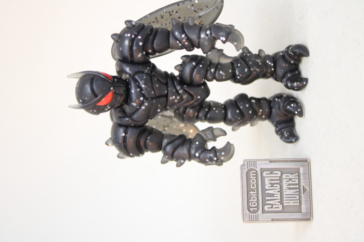 A nifty new mold - which you've seen in a few colors. The first version of this figure was the Void Sectavorian, cast in translucent black glitter plastic with red eyes. I like it, and I'll probably buy one or two more depending on which colors we get. I really like this one, especially if you plop a silver head on it. It looks pretty amazing, reminding fans of the 1980s toy world just how many bug toys we got. Sectaurs, Buzz-Off, Baxter Stockman, Insecticons, and many others probably had a little influence on this guy. Heck, his alternate head reminds me a bit of Kamen Rider too. There's a lot to play with here.