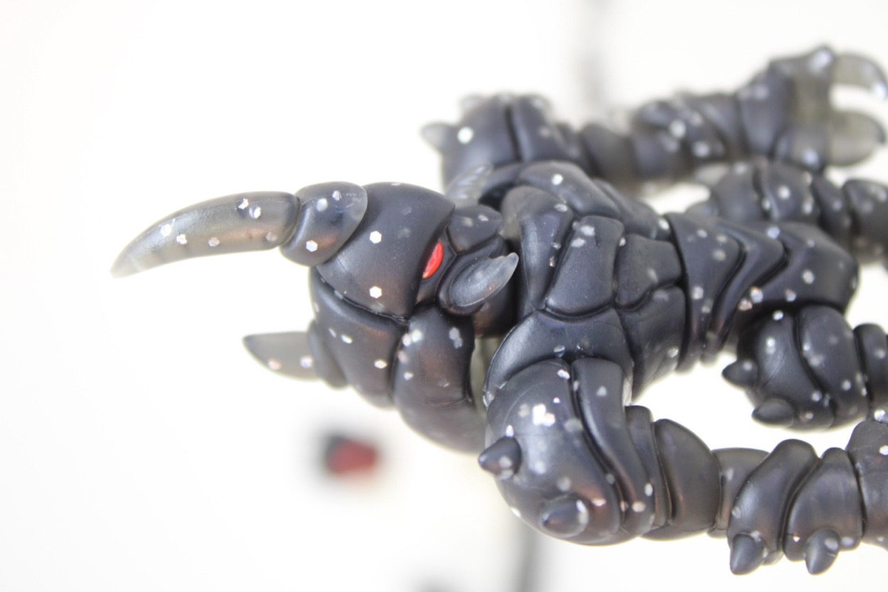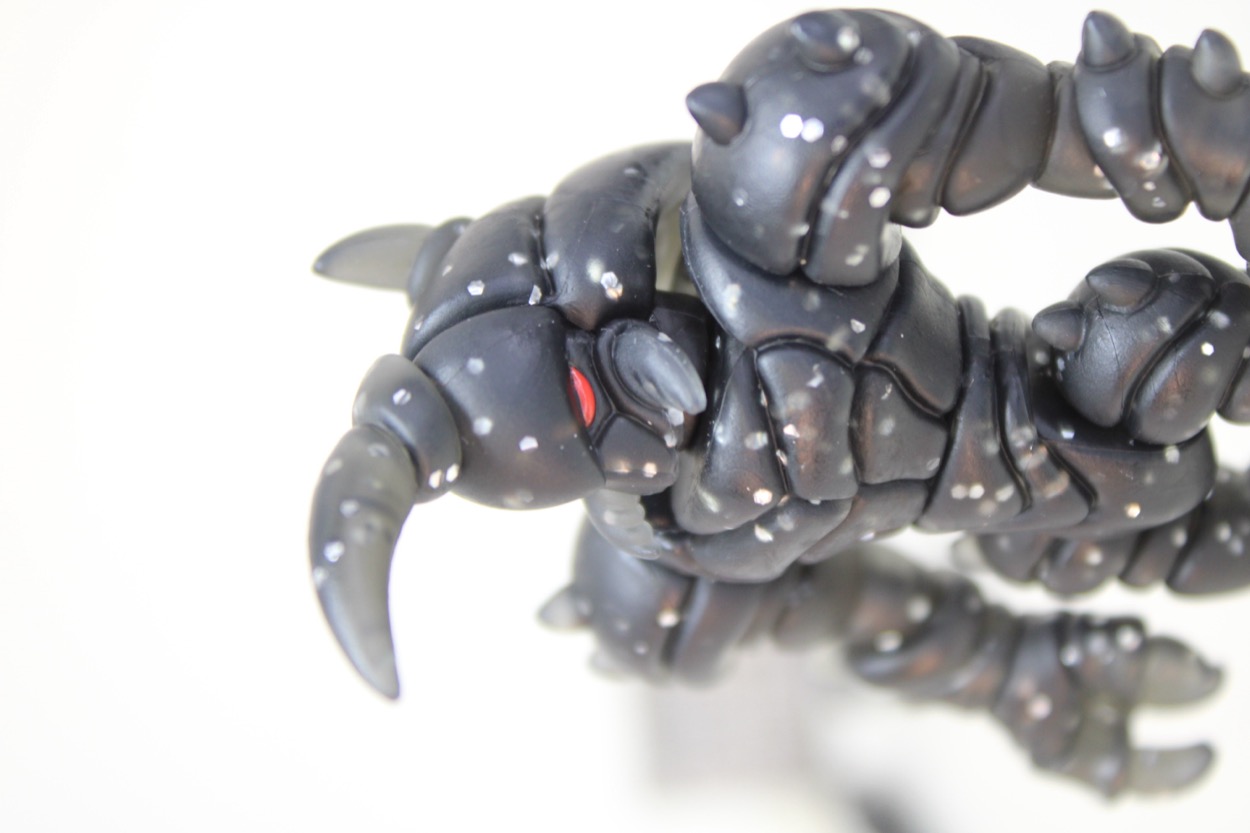 The GodBeast really likes beetles, and most of his original molds have a bug theme. The Kabuto Mushi [FOTD #840] was influenced by Battle Beasts concept art, and his follow-up Nemesis [FOTD #2,115] figure continued the creepy crawly spiky fun. This guy seems like an iteration on the Kabuto Mushi, changing the proportions and increasing the size to match a lot of other Glyos-compatible releases.