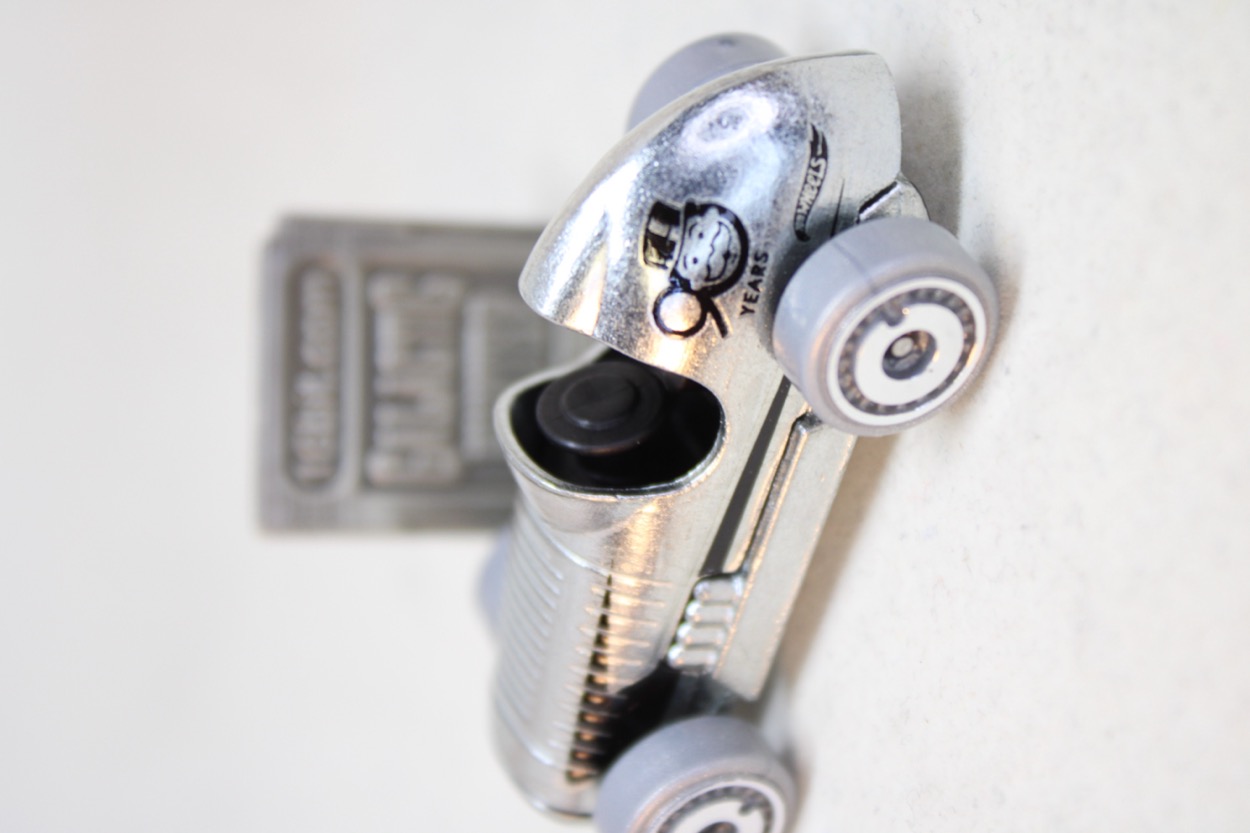 The toy is mostly metal, which is unusual. The Zamac metal base - and chassis - have plastic wheels and a plastic interior. The wheels have added chrome accents, too. To put it mildly, it looks great and the details closely match the game piece of that most hated of board games that still sells a zillion units (and variants) every year, to every generation, until the end of capitalism and/or time (whatever comes first.)