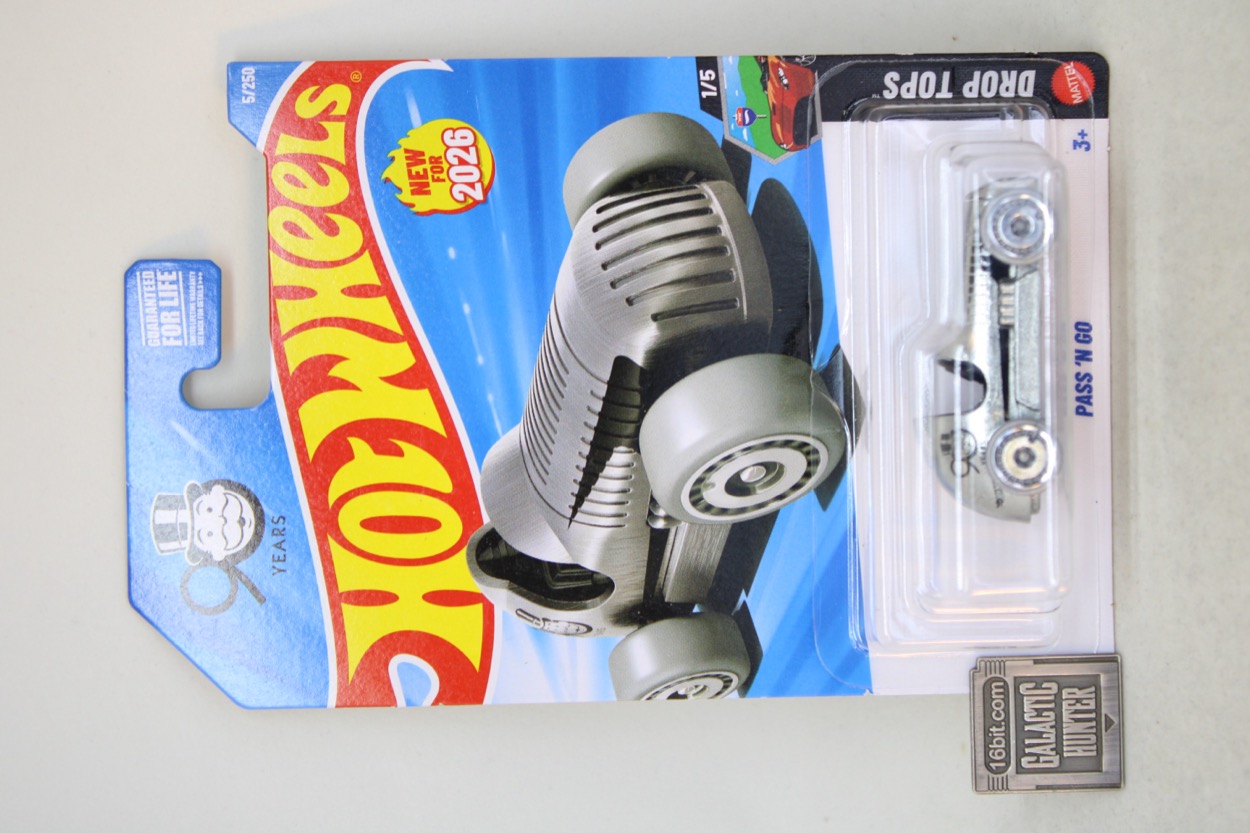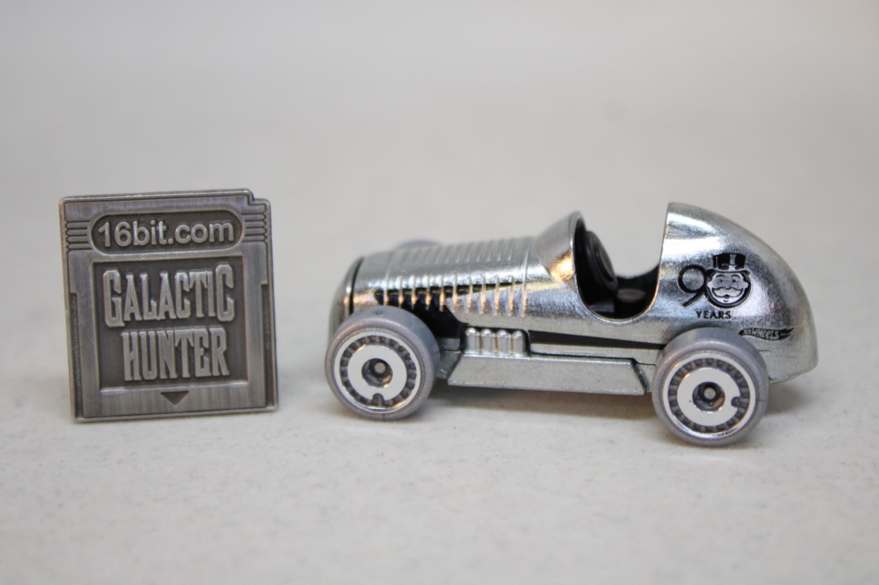 Mattel Hot Wheels Pass 'N Go Die-Cast Metal VehicleMattel never ceases to surprise me. Now that they're palsy with Hasbro, we got a 90th anniversary of Monopoly car with Pass 'N Go. Mattel could have sold this one unpainted - and I'm sure, will do that - but for now it comes in mostly bare metal with some black stripes and an anniversary logo. It's awesome. Get one if you find it, it's an incredibly satisfying feeling chunk of metal.