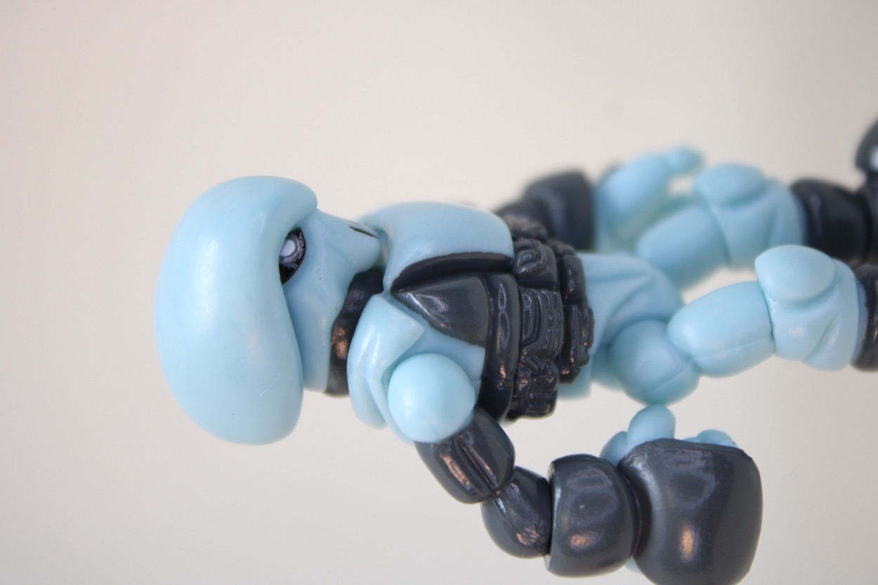 Pheyden is the star space traveler of Onell Design, who gets an occasional adventure in the form of a comic or brief animation. We don't know much about him other than he tends to be a particular shade of blue, sometimes mutating to different colors or finding his various panels remixed. The first Pheyden had some painted panel lines and a few gray elements, with eyes that were a little different with each new release. More recently, Onell Design have taken to changing up which panels get painted. This results in a fresher experience.