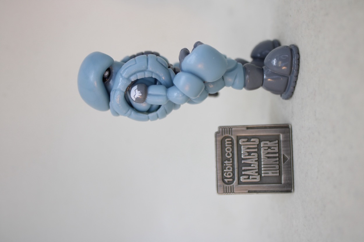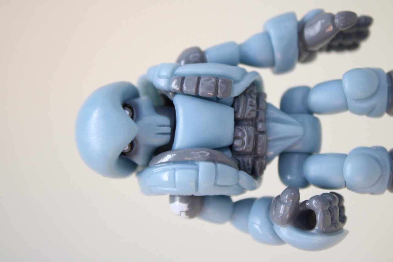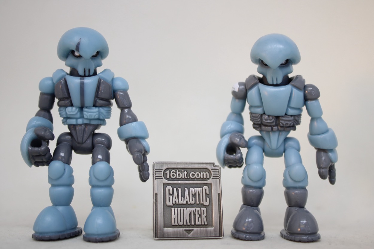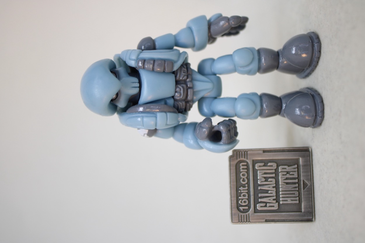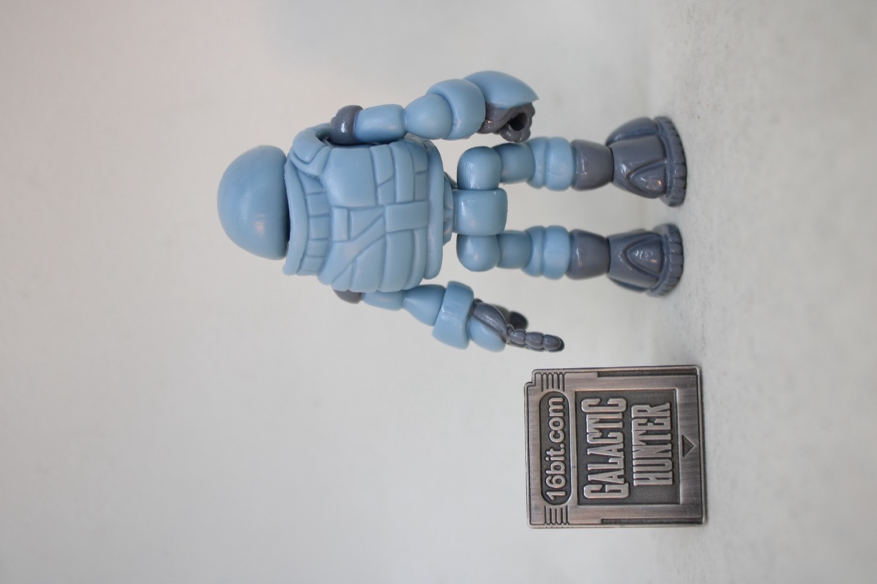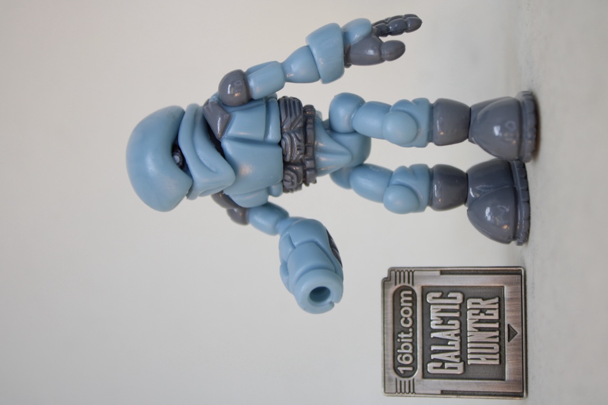 The 2 3/4-inch figure seems to be the same light blue plastic as the 2019 release, with a similar glossy gray. What's interesting are some minor changes - his guy has painted shoulders, the other guy had painted everything else. This guy has fully painted shoes, the other one had painted soles. The head had a scar and the chest had a line of the last one, this one has a painted belt. There are a bunch of minor changes, but it's effectively very much the same figure with a similar deco budget. The white Pheyden tampo on the shoulder is a nice new addition.