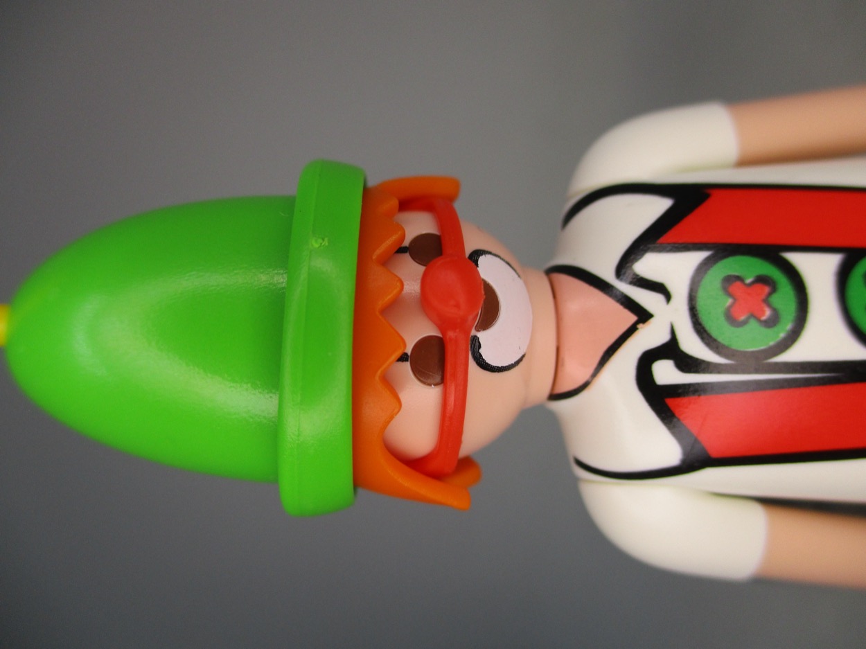Playmobil The figure is fairly simple to put together, and you can see all the exaggerated details. There's face paint, you've got a big nose, there are shoes that clip over the regular shoes, and for some reason his outfit has giant buttons and striped socks. As a kid my Playmobil clowns had little paint outside the faces, so you can see they've come a long way even if the obfuscate some of the painted facial details nowadays. Clearly the designer put some good work into this, even adding painted syspenders on the torso to give it some personality. Nobody here was asleep at the wheel - they really wanted to make a colorful character for whoever pulled the short straw and got a clown rather than something cooler.