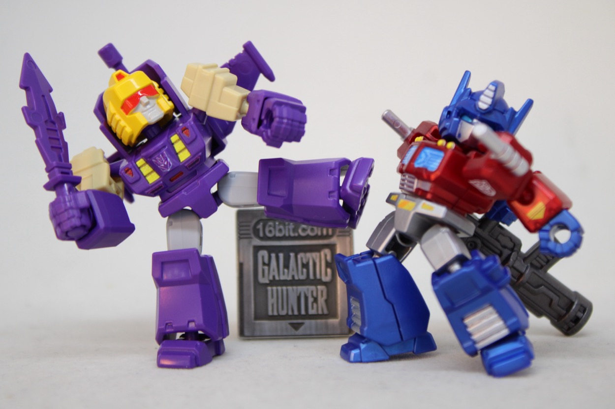 The second most famous triple-changer as a one-mode, 2-ish inch figure. Blitzwing from Blokees is mostly molded in color. The collectible figure has a load of articulation but is fundamentally the same as the previous waves' robots. This is not a complaint, I don't know why you would want to change up a pretty good body.