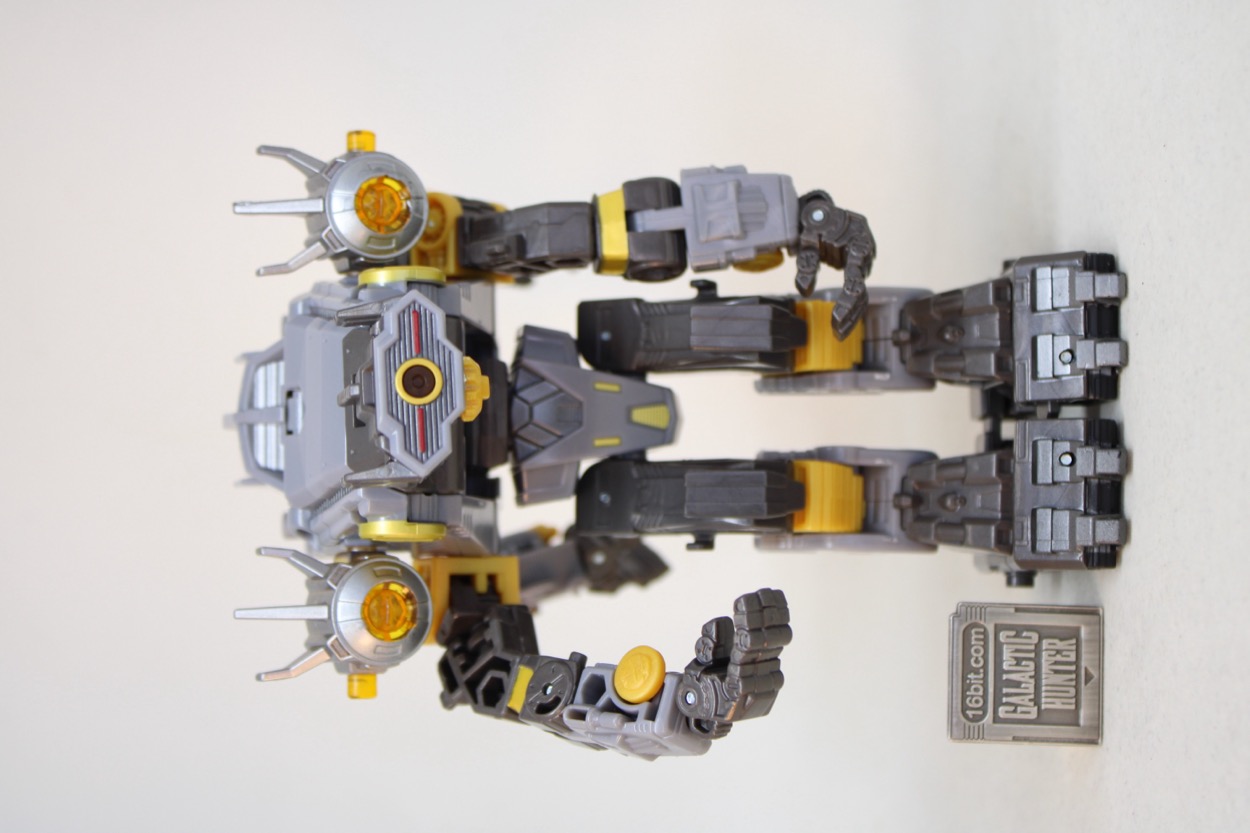 Very few robots have four arms, fewer with multiple arm joints plus wrists that can swivel or also bend down. The big feet help grant him unmatched stability, and each limb is positively loaded with moving parts. The level of detail is consistent with the line, and it's light on gaps which fans may obsessively need to fill. With all the limbs and separating pieces, that budget had to go somewhere and this one was developed before tariffs were official. I don't doubt future Voyagers will be made with different standards, but this one seems to be a fairly decent-looking, oddball robot that doesn't behave like the rest of the line. Also, I had parts constantly pop off from moving them - the head, the arms, the legs, everything just easily separates. It's part of the toy's gimmick, but it's also kind of unfortunate. Other lines with pop-apart figures (Glyos, Xevoz, etc.) tend to hold together a bit better and it's absolutely going to dump cold water on my fidgeting with the toy. I don't know that I've ever been able to move the head without it coming off at least once.
