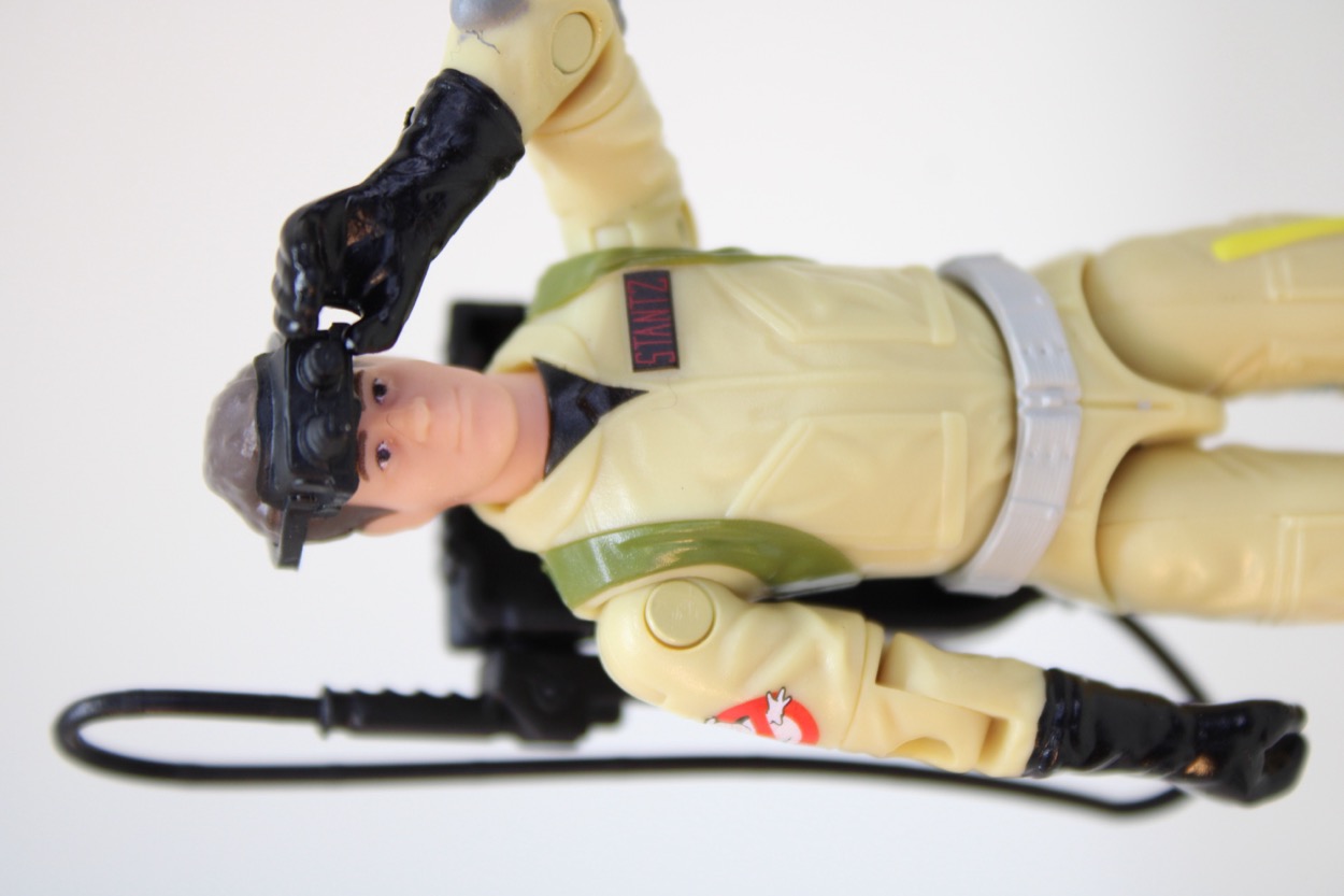 The accessory tally is great for the price, with gear that is sort of all over the map in terms of what I want and/or should have expected. Ray's goggles are unpainted and fit around his head with no problem. They're pretty much perfect. The PKE meter is a tight fit in Egon's hand, with silver antenna and no other deco. It's slightly better than I would have expected in the 1980s, as gear back then tended to be unpainted with few exceptions. This brings us to the proton pack, with red dots on the back. Kenner's blue packs had no decoration, so this is better than we actually got back then. The wand is connected by a hose that you plug in the backpack yourself, and the plastic isn't super great at bending to be posed well. It's ideal for hanging on the figure's back, but you can get it in their hands with a little effort. I feel this is authentic to what Hasbro would have done back then, as numerous figures had molded (fragile) hoses molded to the gear. Later in the decade we'd get figures with separately molded hoses, like the Hydro-Viper, but those had other problems staying in place. I'd say Hasbro did what made sense here.